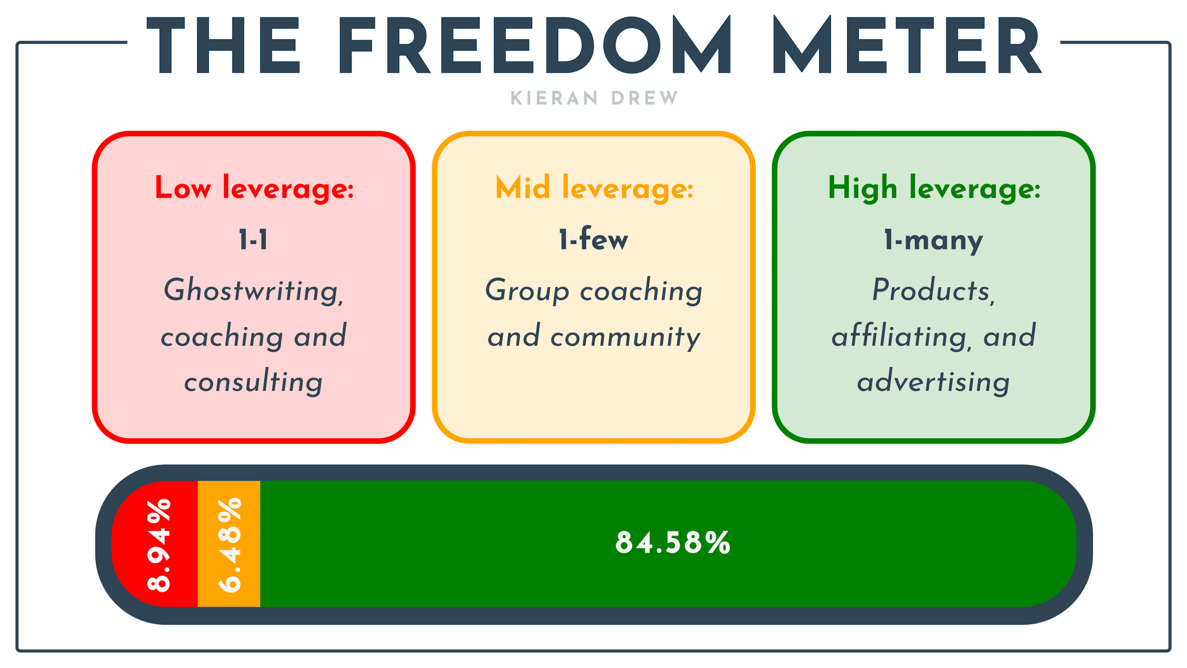 The aim of 2023 was to disconnect my earnings from my time, so I set a target to get my ‘low leveraged’ income below 10%.