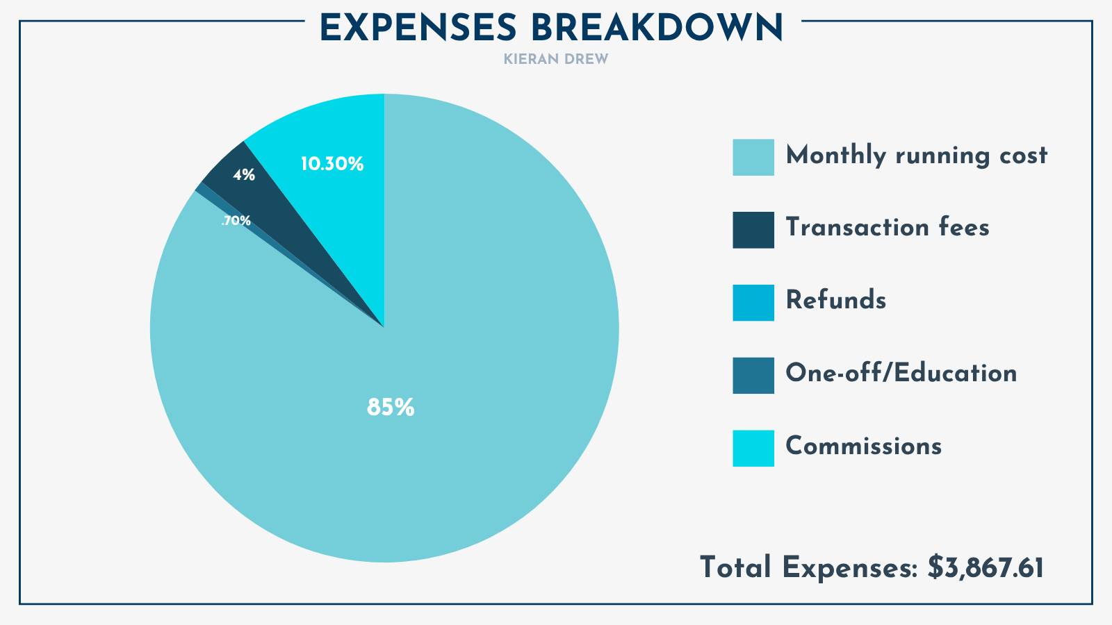 The revenue came from automated product sales with my first paid ads funnel. I turned the thank you page for my Authority Asset, the SUCKS framework, into a salespage for The Business of Writing—a $14 e-book. Attached were upsells for my other products and a welcome sequence of my best content. I’m now running ads (Meta and newsletters), and have a 1.6x return on ad spend within 30 days. It’s early days, but it feels great to have another system set up to work for me. I’m fleshing out my Writing World: combining assets and automations to let people immerse themselves in my ideas, whilst I focus on my craft. This is one of the major frameworks I teach inside my upcoming book Magnetic Writing. You can join 1000+ people on the waitlist here. Expenses:Expenses breakdown